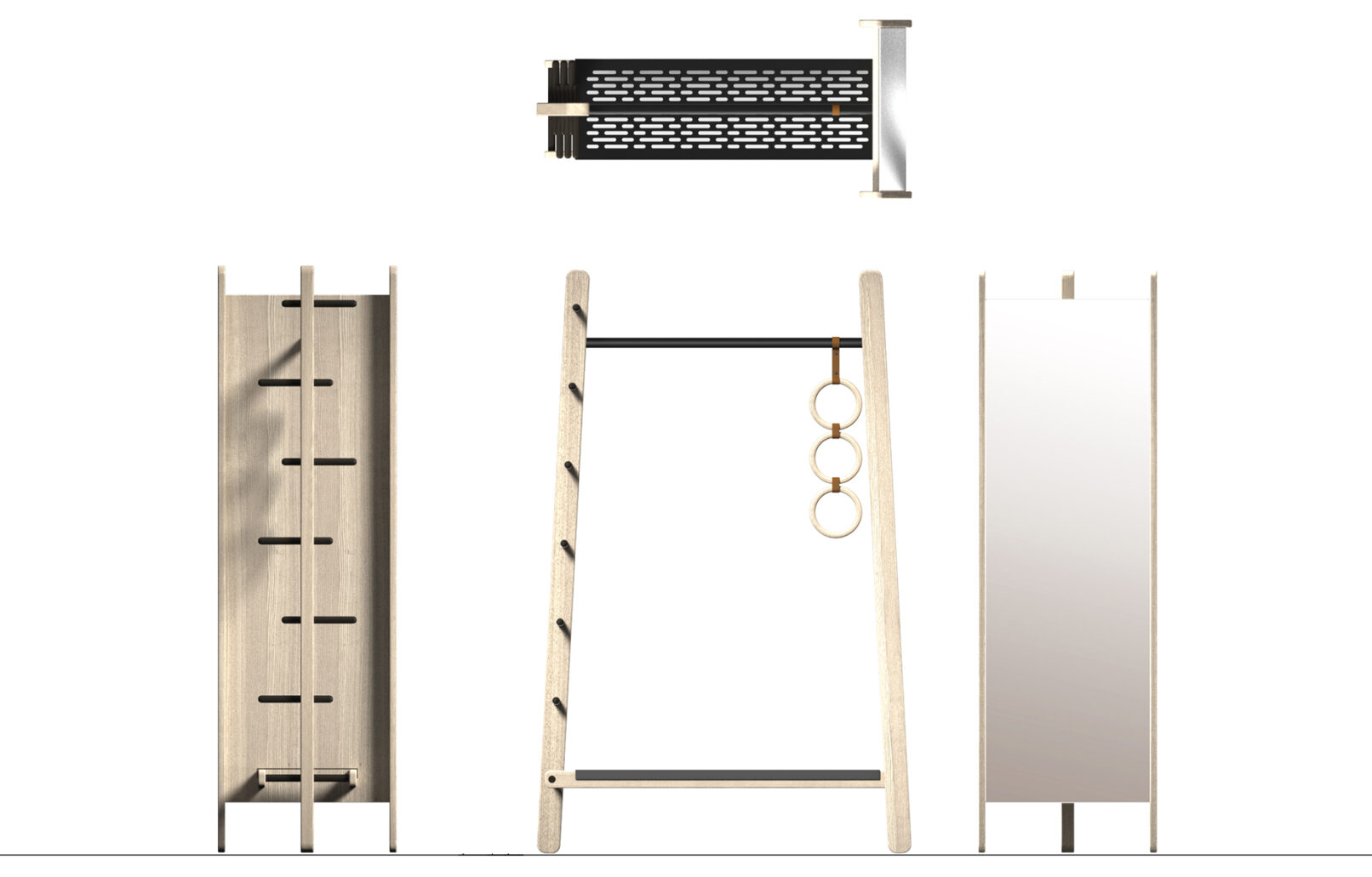 The coat rack comes along formally quite relaxed and casual and cites subtly details and materials in reference to sports equipment. With a lightness of touch, GYM can be used freestanding in the entrance hallway, but also in the youth room. In any case, GYM offers enough space for everyday clothing and certainly also for sports gear – so get into your sports clothes and let’s go!