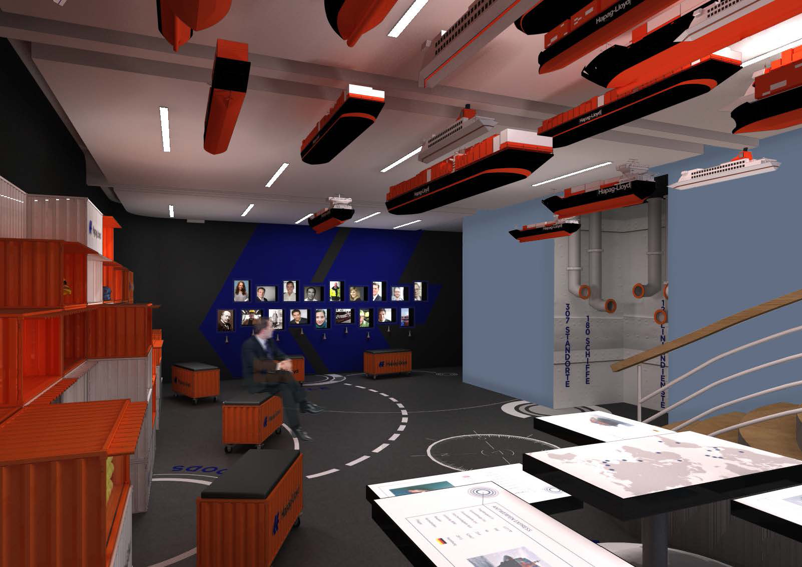 For the first time, the showroom presents the extensive spectrum of the company: the history, contents and themes of Hapag-Lloyd as well as the people behind it and their everyday working life are made comprehensible in the form of an experience exhibition.