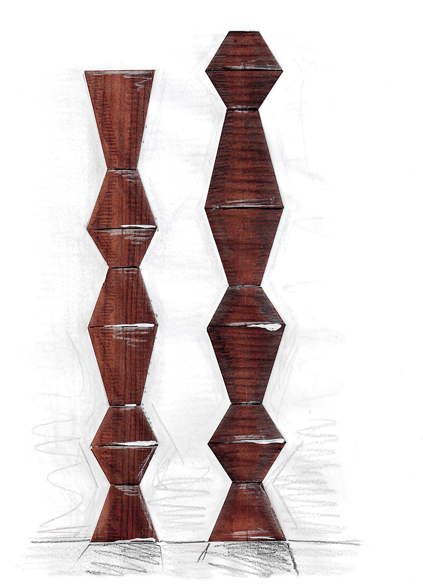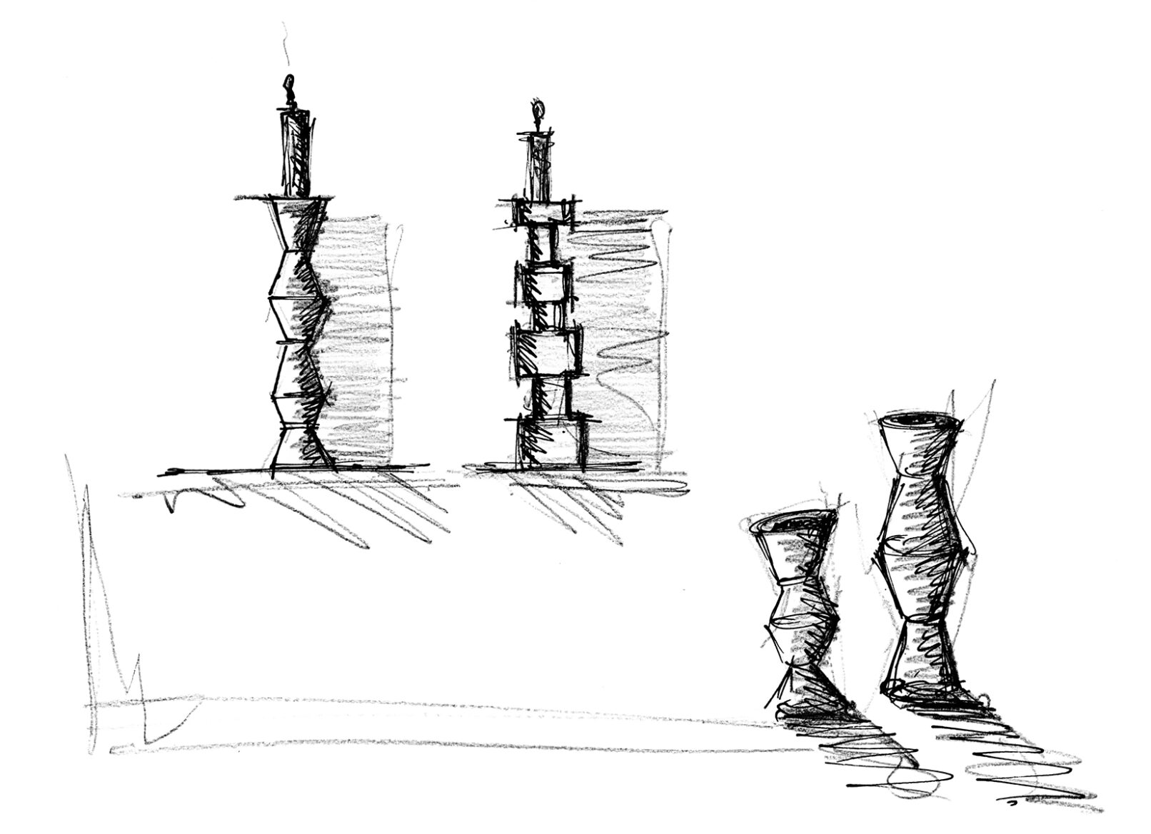 I took up this idea, which gives the buyer creative freedom, in the design of Les Grand Dames. A simple, reduced basic form – the cone section – becomes a formal & colorful game and invites to ever new creative compositions.