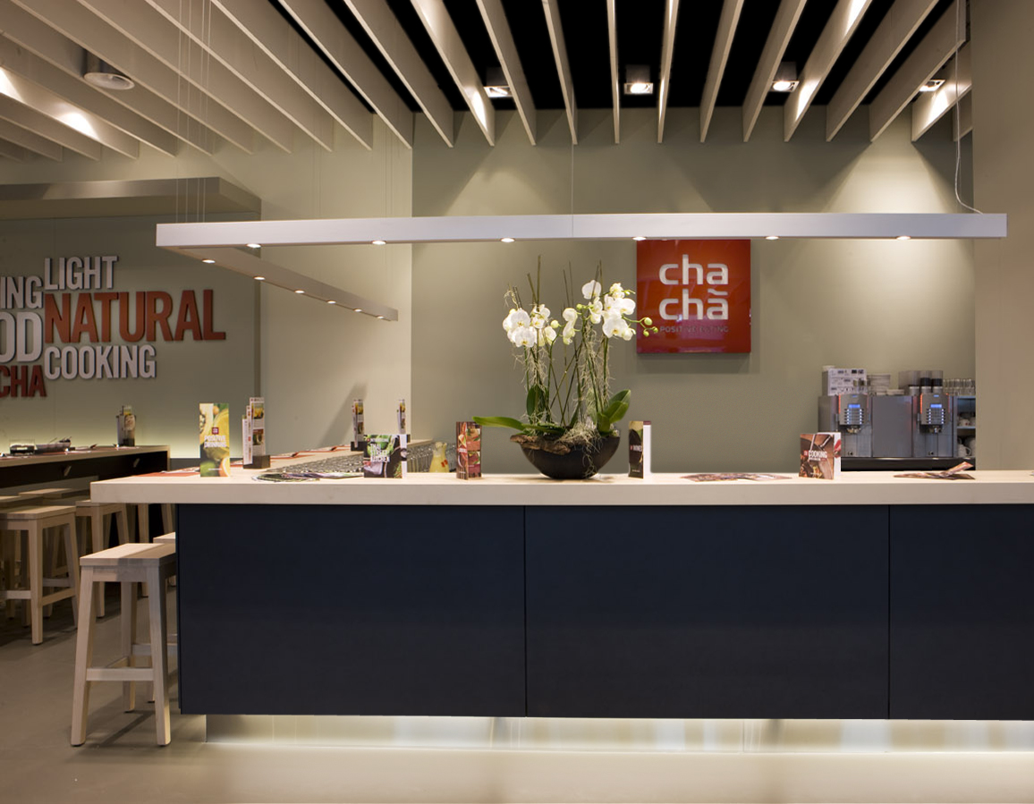How do you transfer the slogan ‘Cha Chà – Positive Eating’ into a spatial atmosphere?