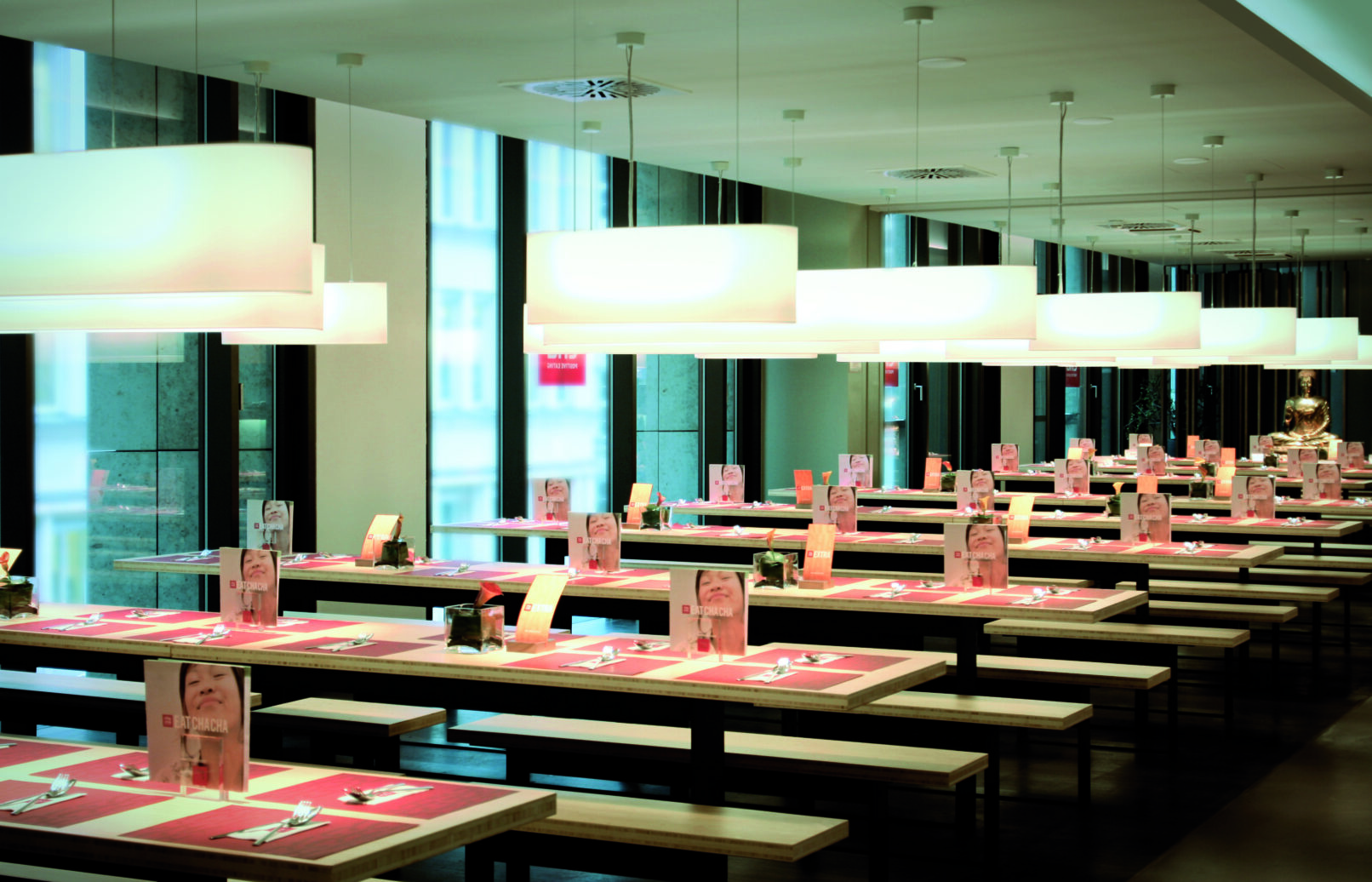 However, it should not become too cozy, so that the flow of visitors remains steady: Long table-bench combinations without seat cushions, which simultaneously encourage socializing and communication among guests, are located in the main guest area. Depending on the location, this is complemented with comfortable seating niches and upholstered stools, so that in the evening it is possible to linger longer.